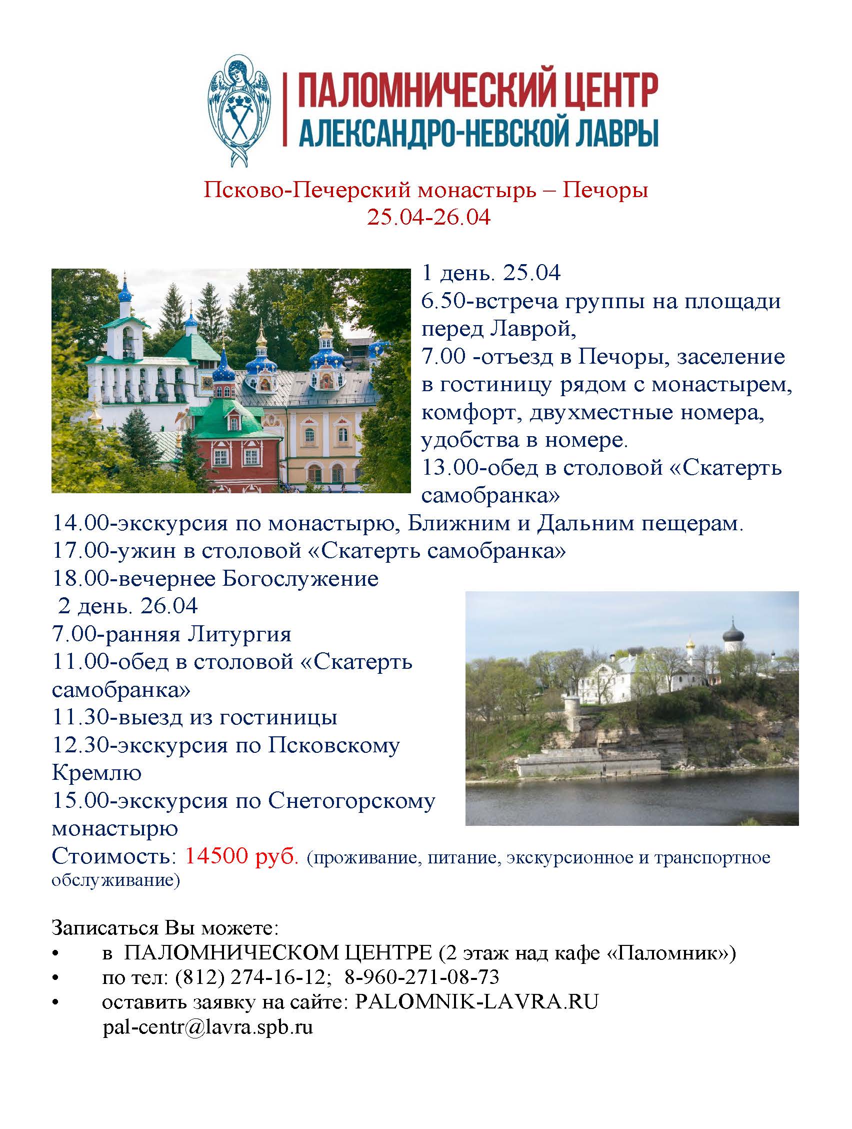 пожертвование за обзорную экскурсию по Лавре (проводится ежедневно в 12.00, 14.00 и 16.00.) будет составлять: