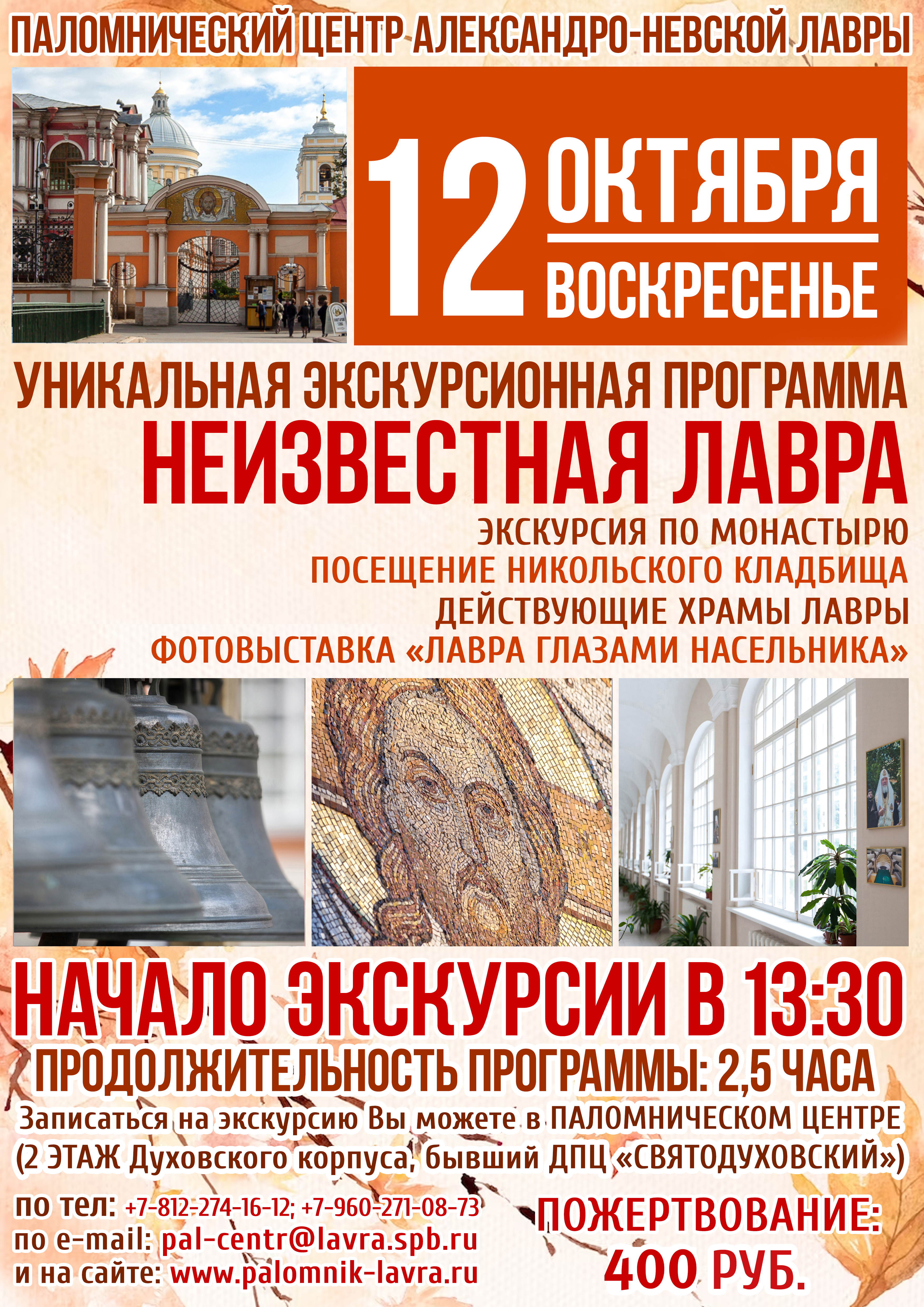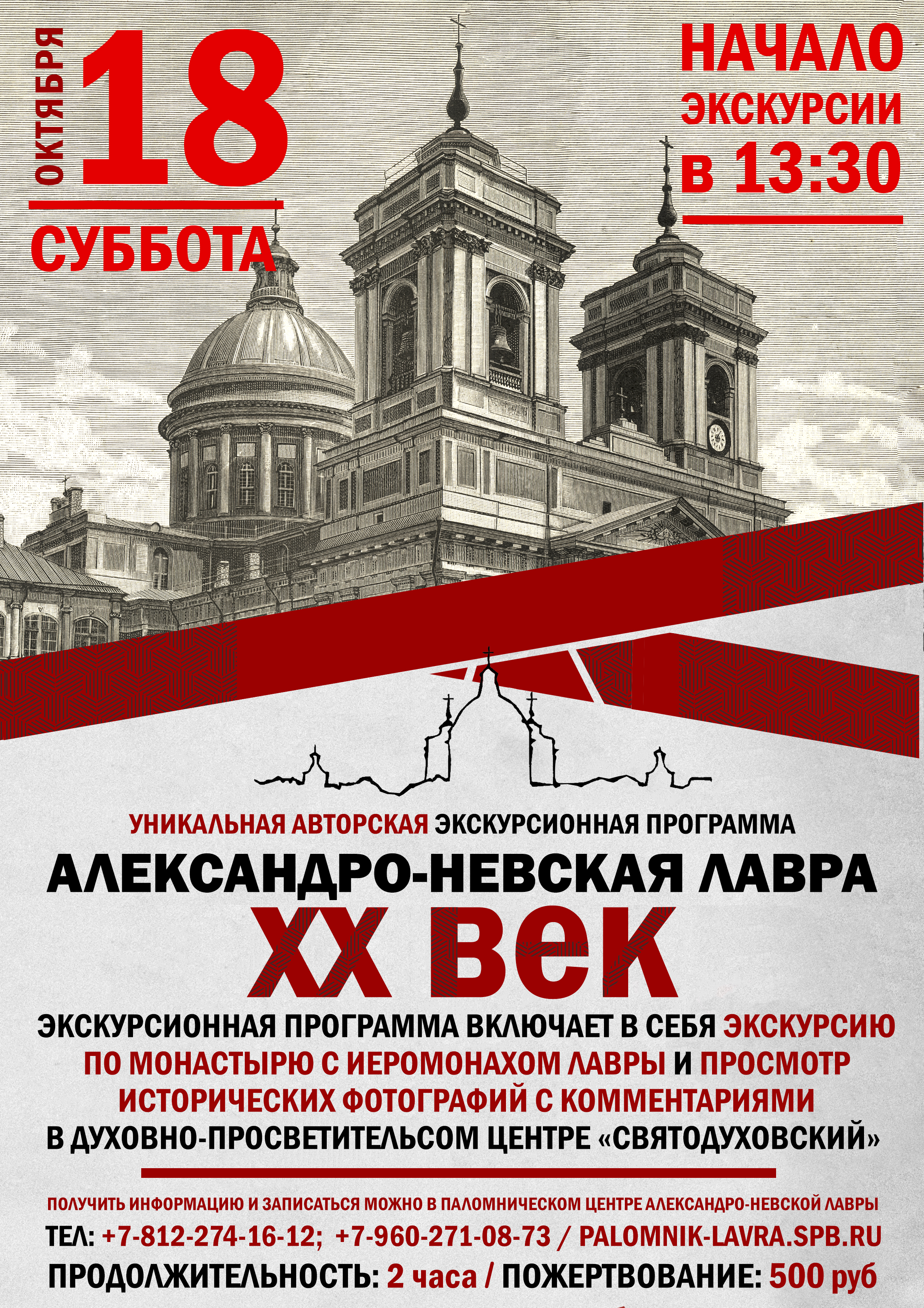Александро-Невская Лавра 20 век | 500 | 13.30-15.30 | 18 | под заказ | под заказ | под заказ |