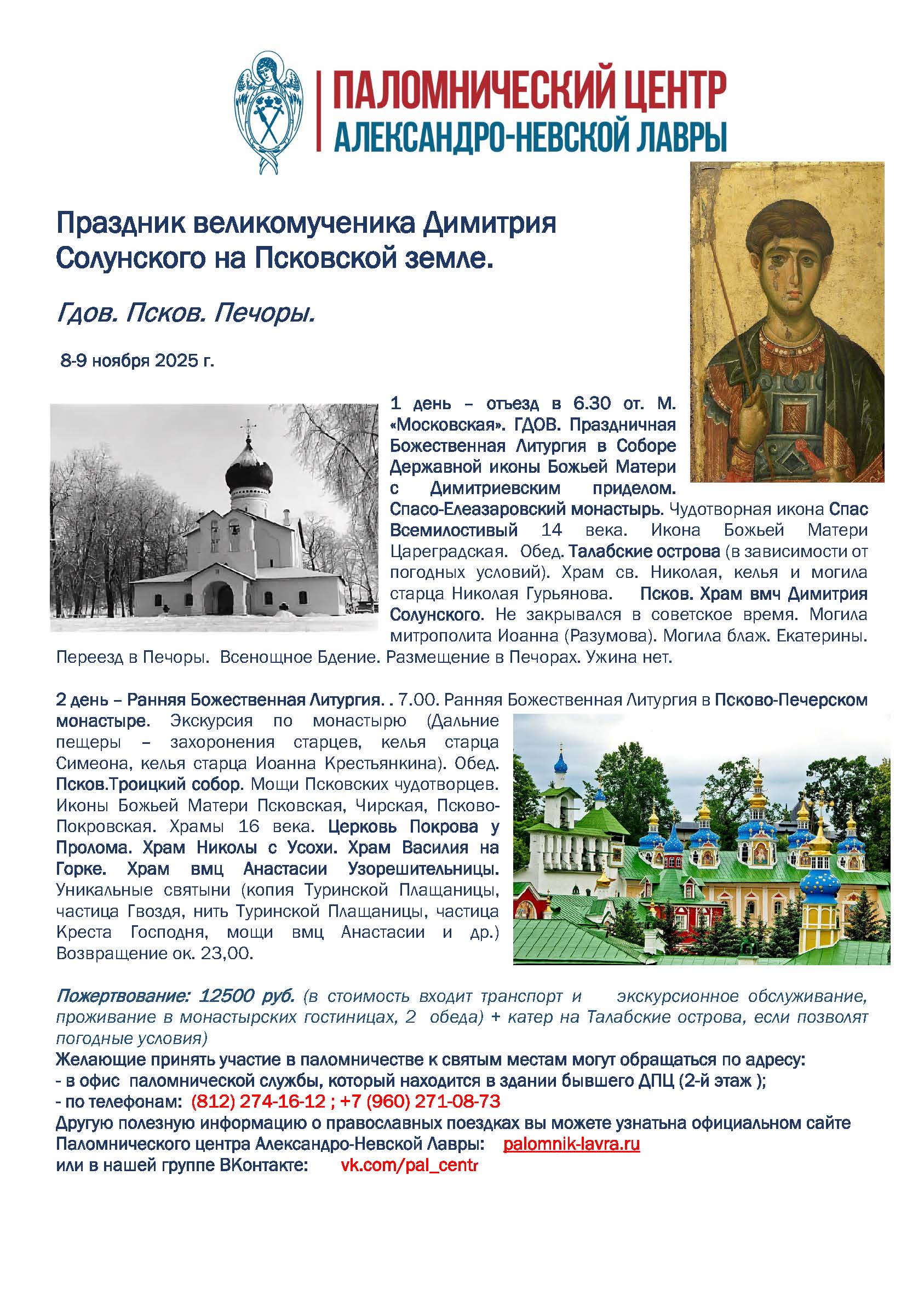 Праздник великомученика Димитрия Солунского на Псковской земле. Гдов. Псков. Печоры