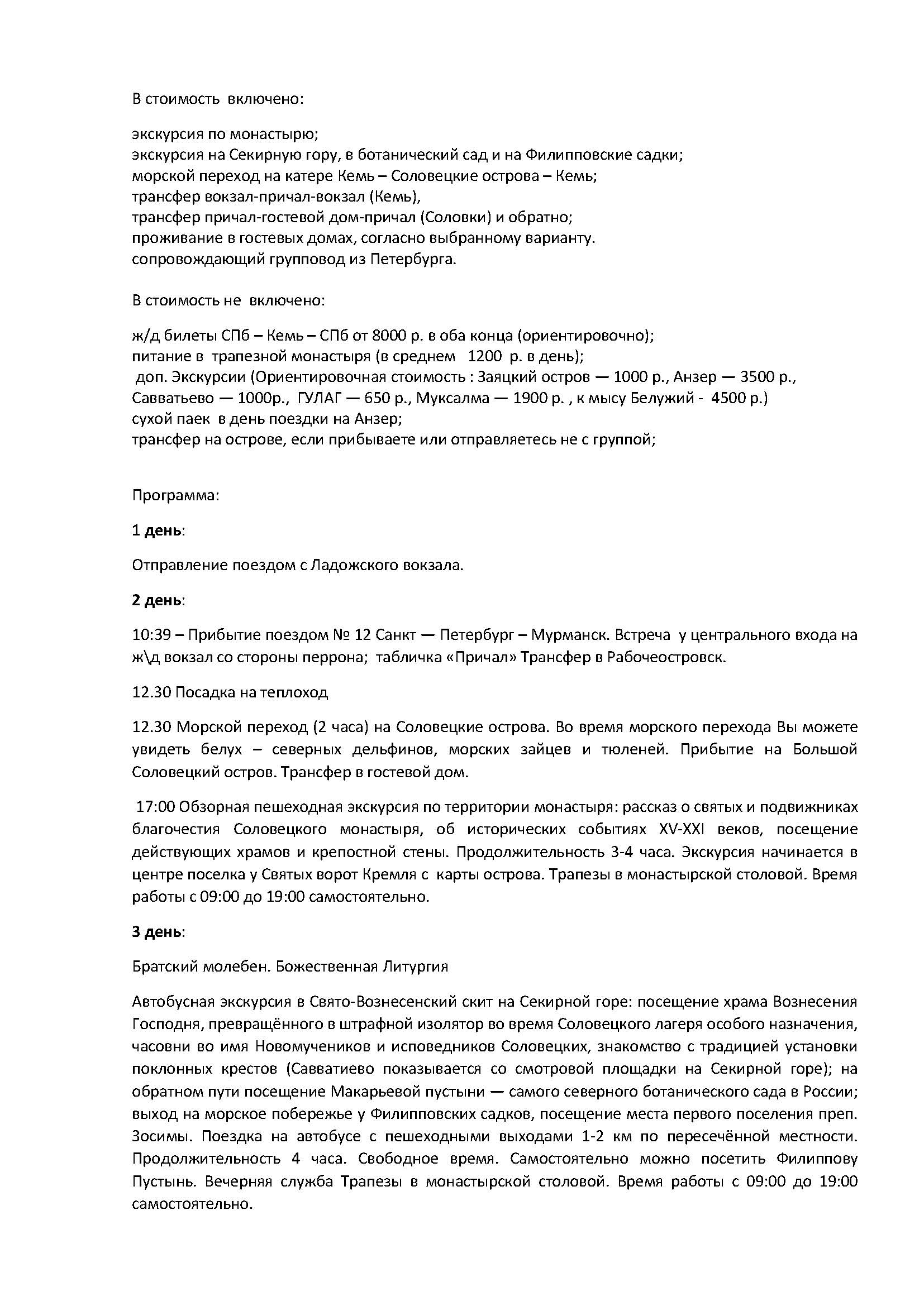 пожертвование за обзорную экскурсию по Лавре (проводится ежедневно в 12.00, 14.00 и 16.00.) будет составлять: