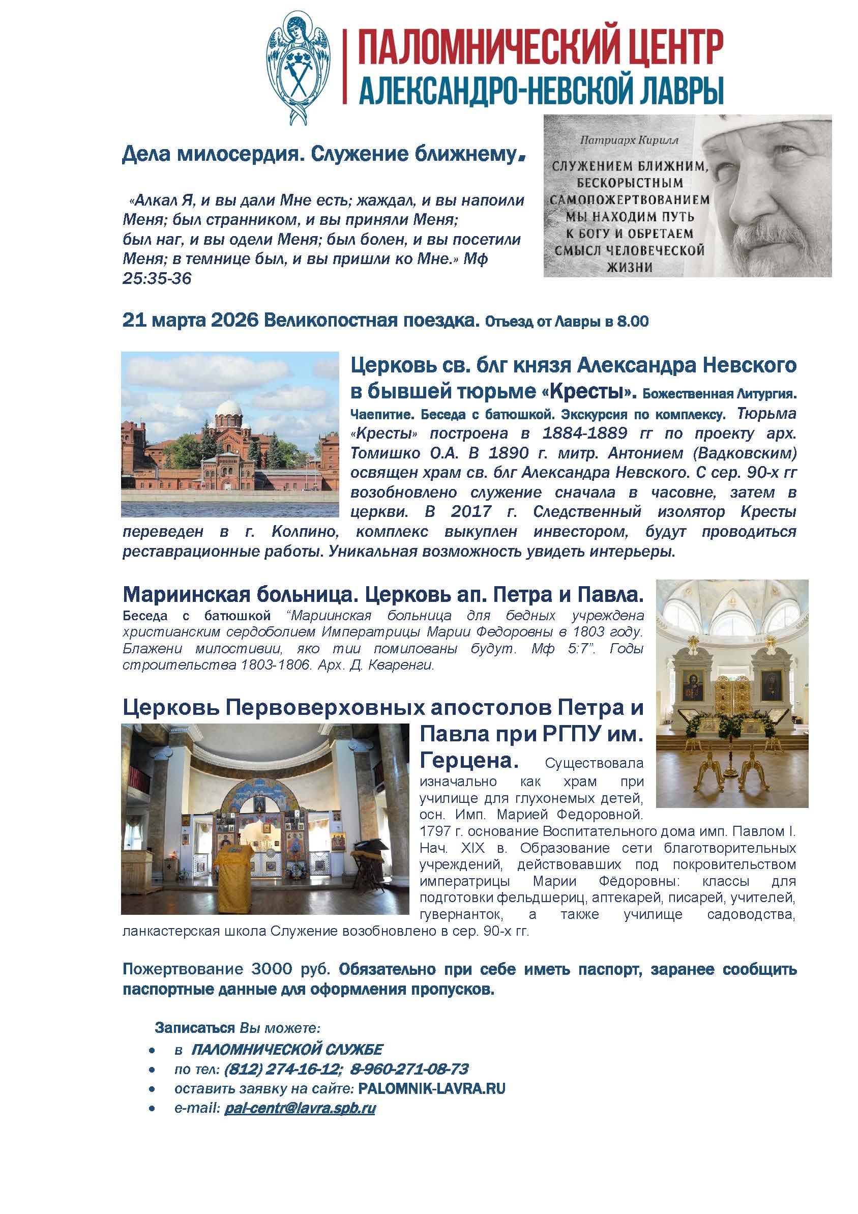 пожертвование за обзорную экскурсию по Лавре (проводится ежедневно в 12.00, 14.00 и 16.00.)  будет составлять: